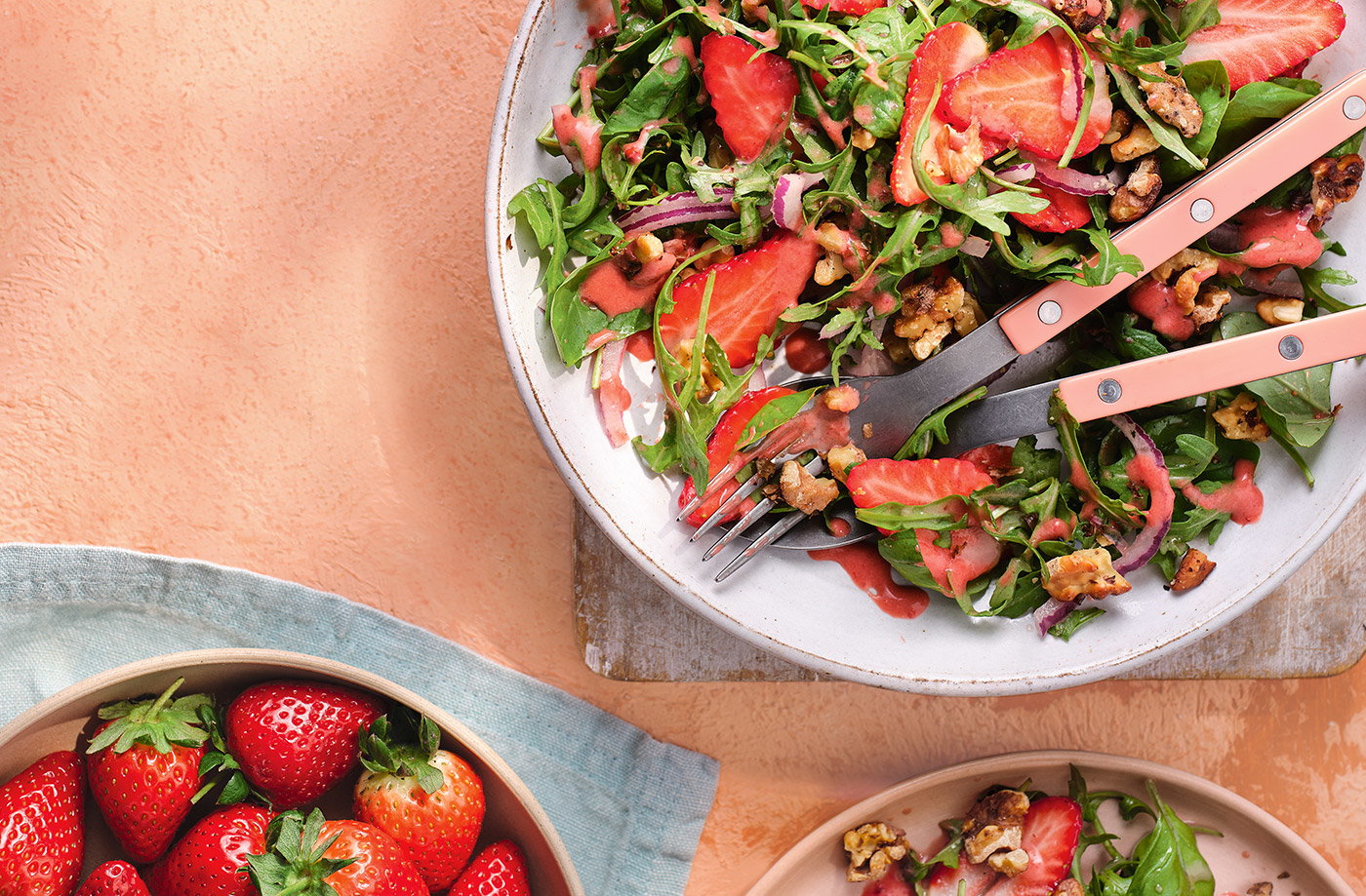 Add a fresh and vibrant contrast to your Christmas table with this simple salad. Peppery rocket or spinach pairs beautifully with sweet strawberries and toasted walnuts, while optional feta or goat’s cheese adds a creamy note. A light dressing of olive oil, balsamic vinegar, honey, salt, and pepper brings everything together without overpowering the meal.